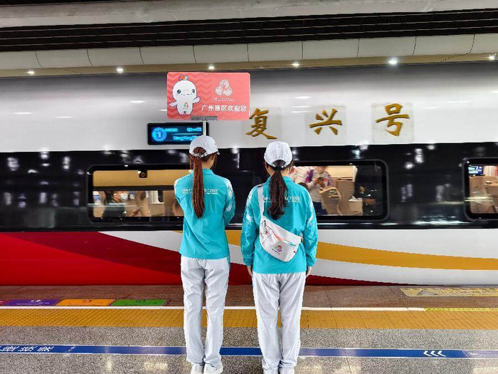 为保障十五运会以及残特奥会期间赛事来宾顺畅出行,广州南站优化抵离服务路线,在西门就近设置上、下车专区,在站内提供快速验证、安检通道,服务保障团队及志愿者提前在站台、上下车专区等候,无缝对接提供指引服务。